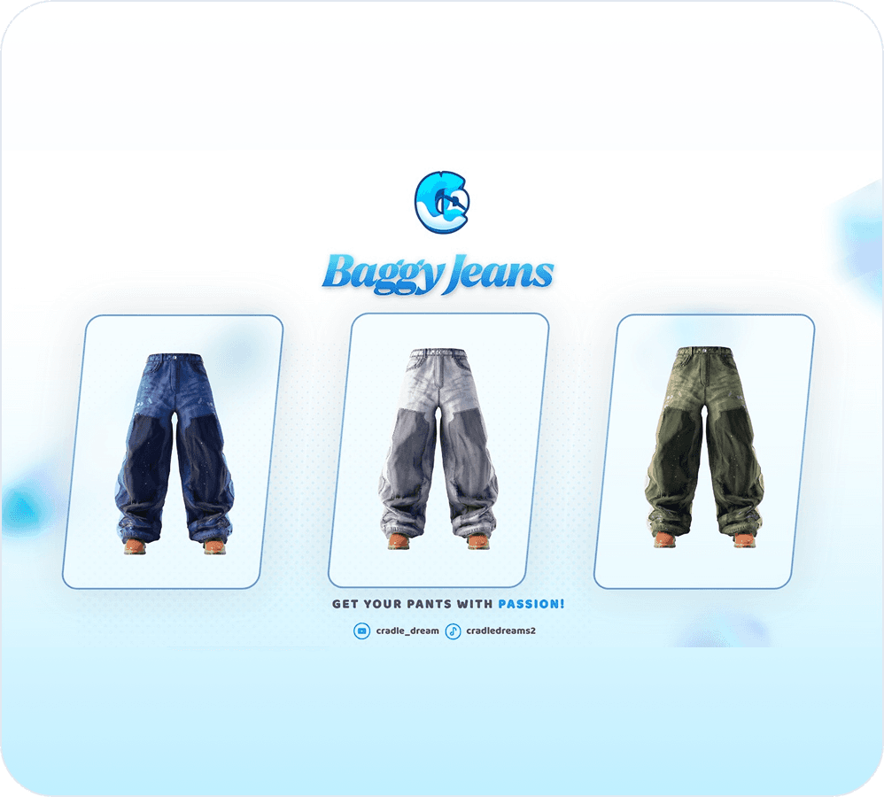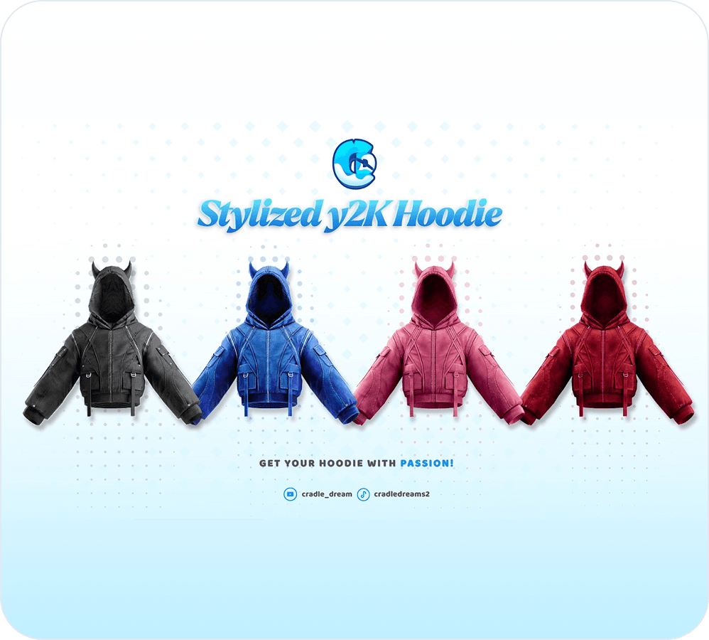 Cradle Dreams is a 3D agency focused on custom Roblox assets and UGC commissions. We work with game developers and studio owners who need quality models done right — clothing, accessories, layered fits, whatever your project needs.